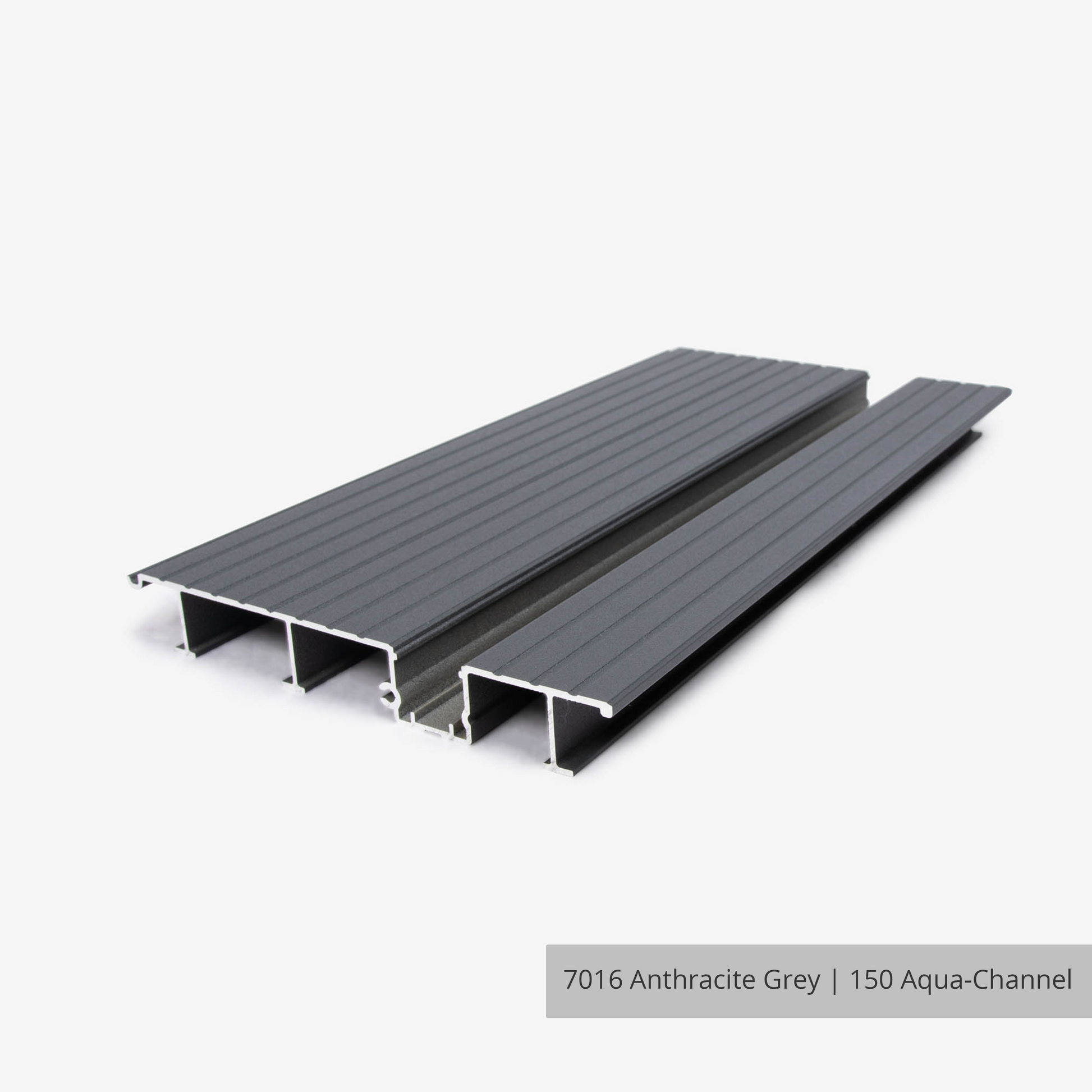 Each 150 Aqua-Channel Aluminium Decking sample pack is available in Anthracite grey (RAL 7016)
