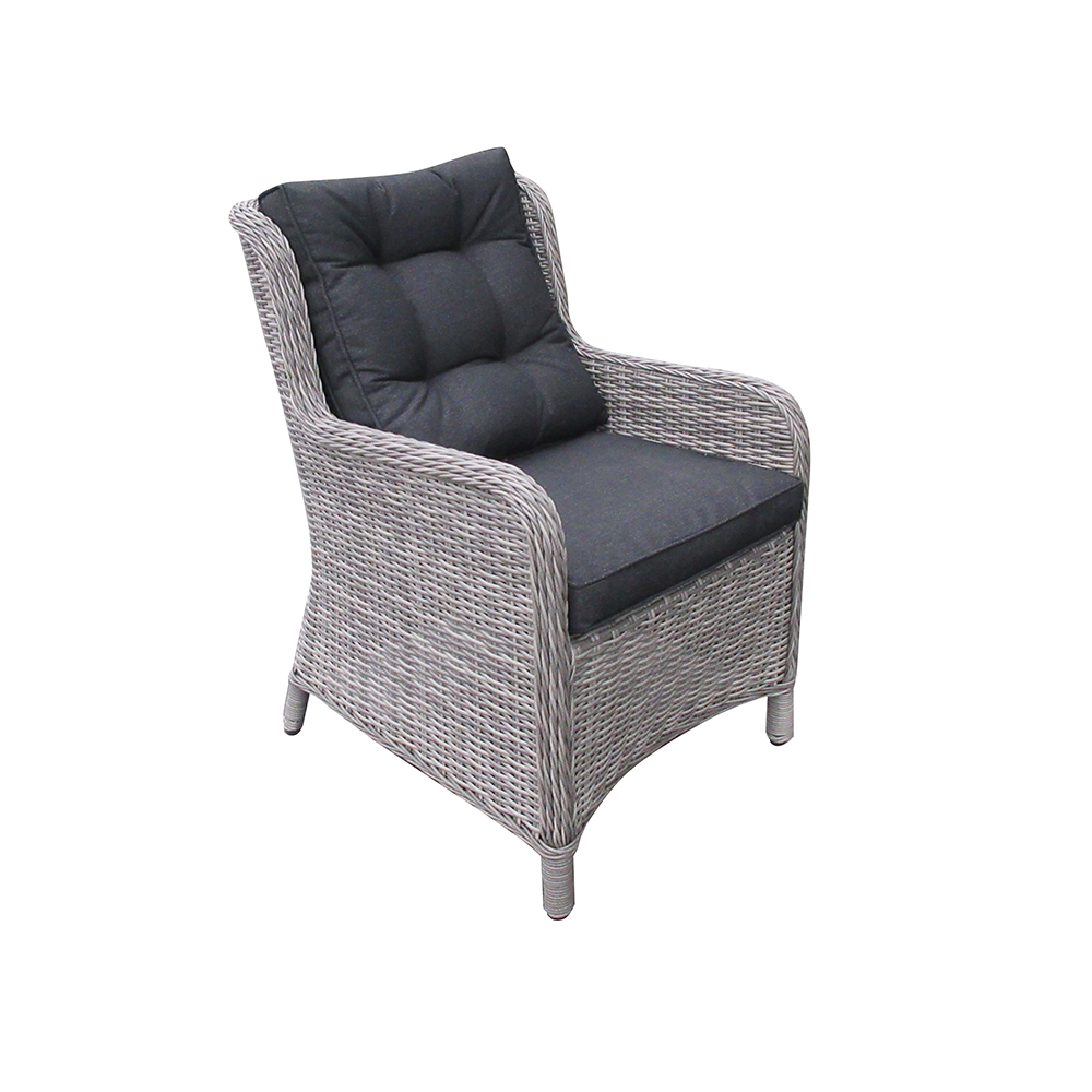 - Light grey luxury rattan weave with rich grey cushions