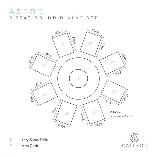 This set comes with x8 Astor Outdoor Armchairs, offering versatility and durability to perfectly suit your alfresco dining needs.