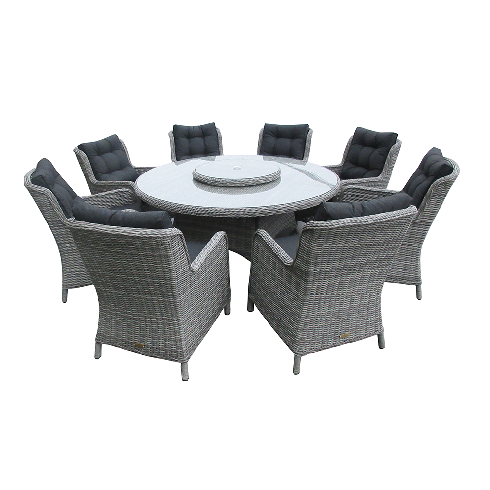 Created with peace and tranquillity in mind, sustainable rattan garden furniture by Galleon is guaranteed to be a beautiful addition to your outdoor space. Perfect for bringing the friends and family together, this stunning grey Astor Dining Table features a rotating centrepiece that makes hosting garden dinner parties and BBQ’s simple.