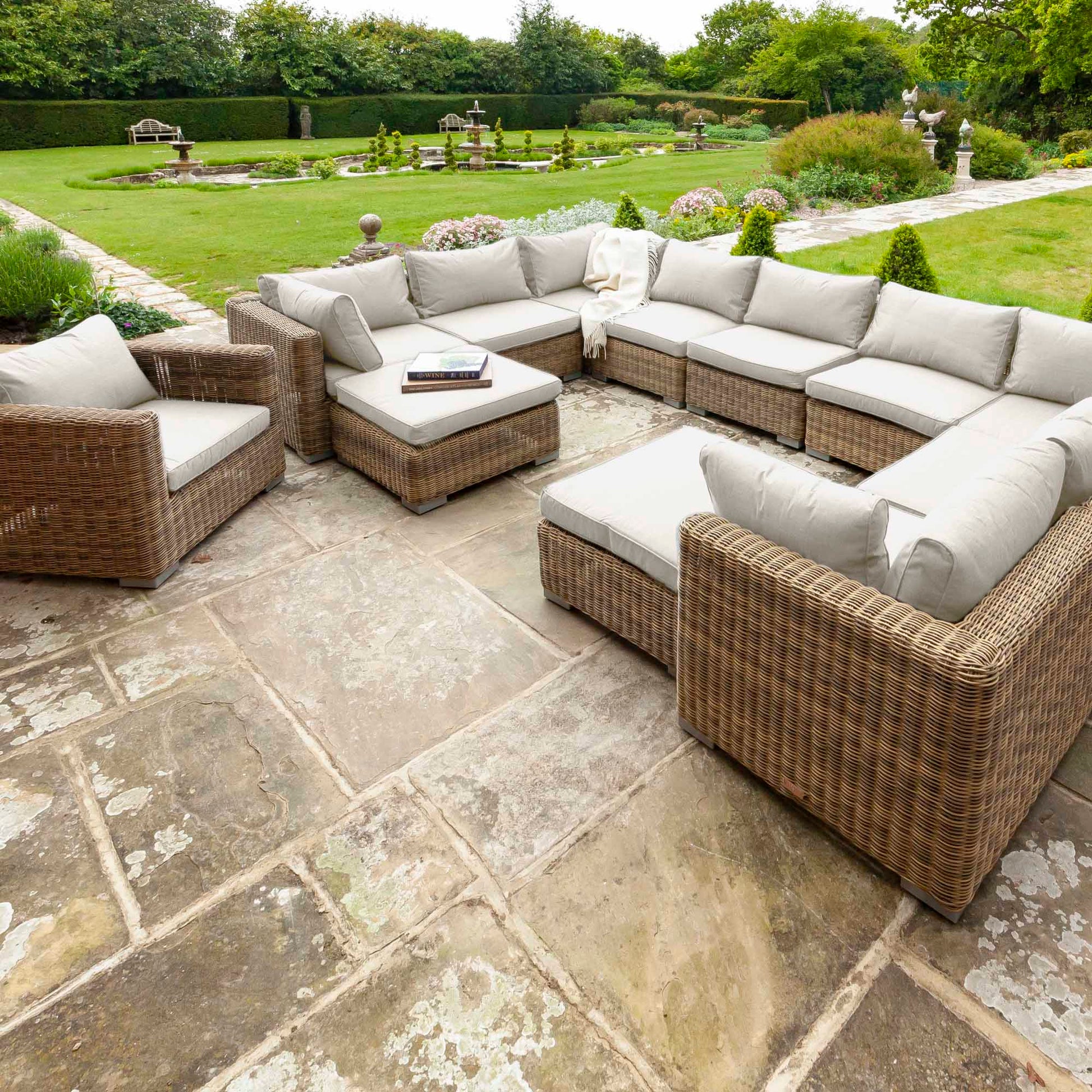Choose the perfect sofa set for your outdoor space with the flexible modular Livingstone corner brown and grey rattan garden furniture set, offering versatile, high-quality and long-lasting performance.