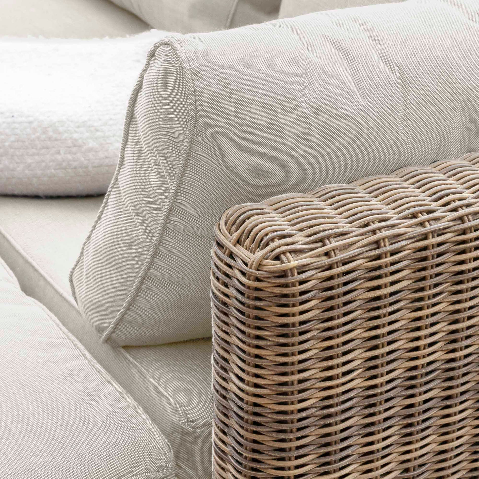 - Natural brown rattan with cream cushions