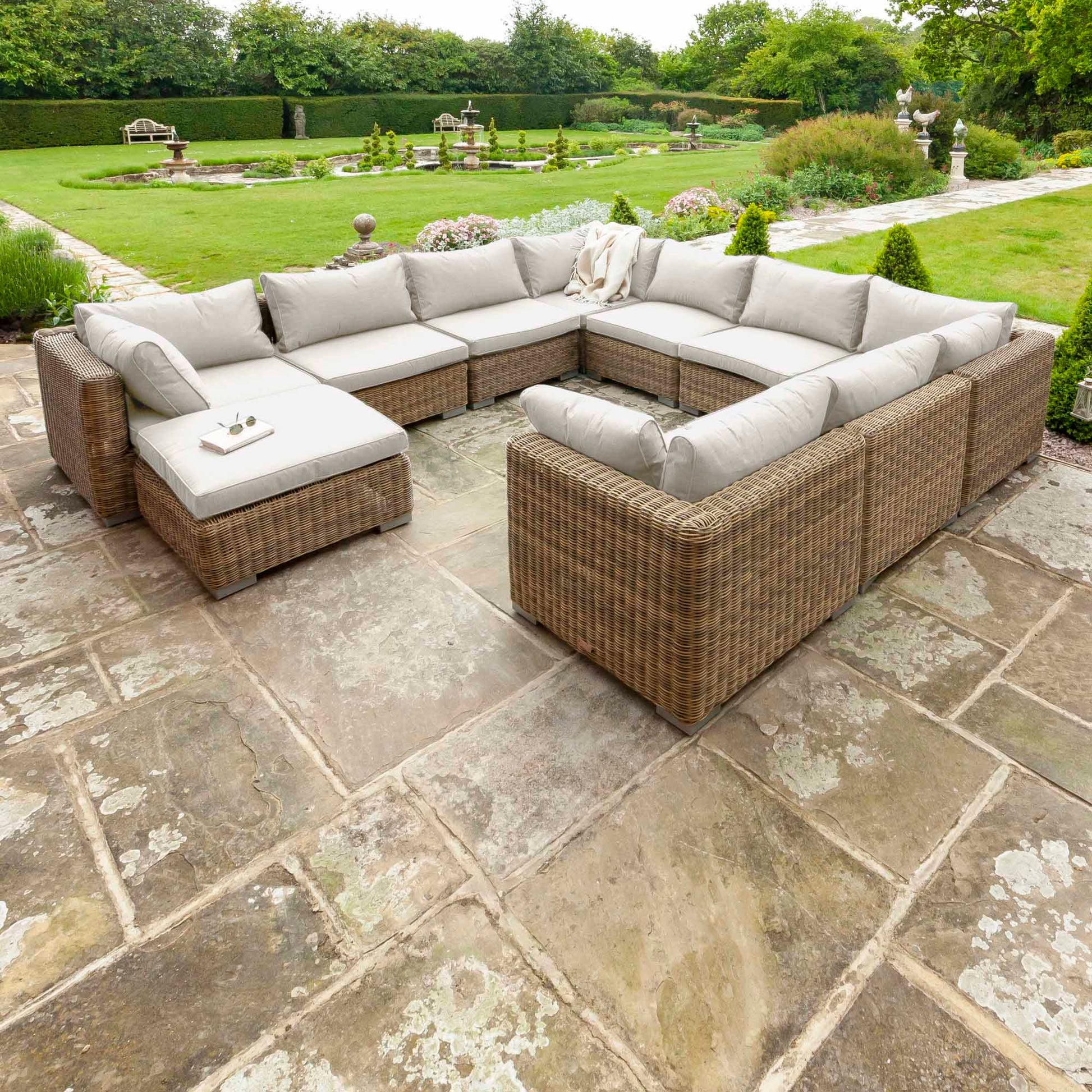 Choose the perfect sofa set for your outdoor space with the flexible modular Livingstone corner brown and grey rattan garden furniture set, offering versatile, high-quality and long-lasting performance.