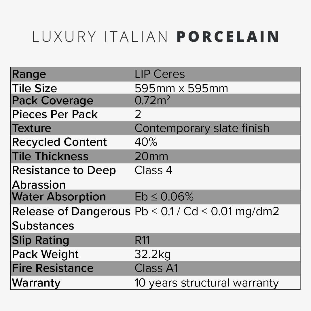 Porcelain Paving stock is currently experiencing longer lead times due to Italian factories closing. Please ask your sales representatives for more information.