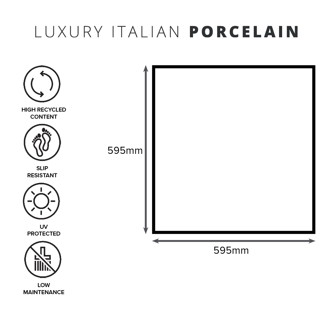 Porcelain Paving stock is currently experiencing longer lead times due to Italian factories closing. Please ask your sales representatives for more information.