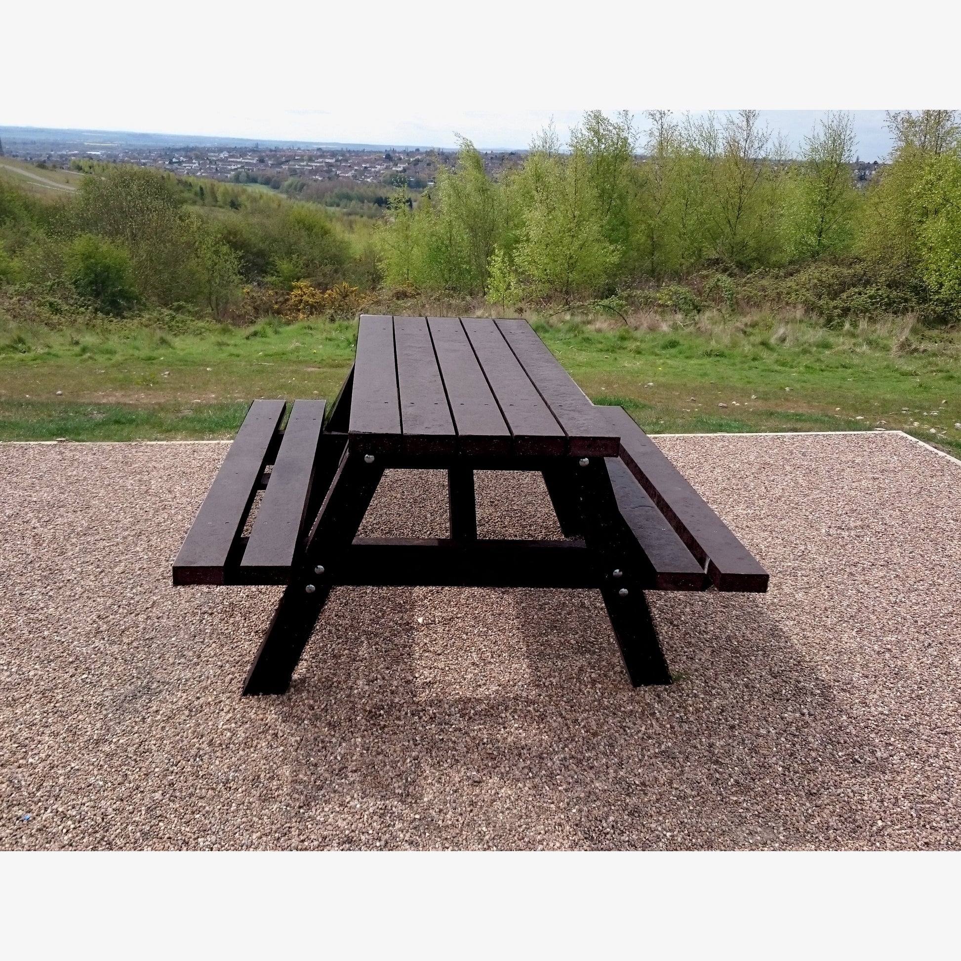 Maintenance free picnic tables made with environmentally friendly Manticore Lumber.